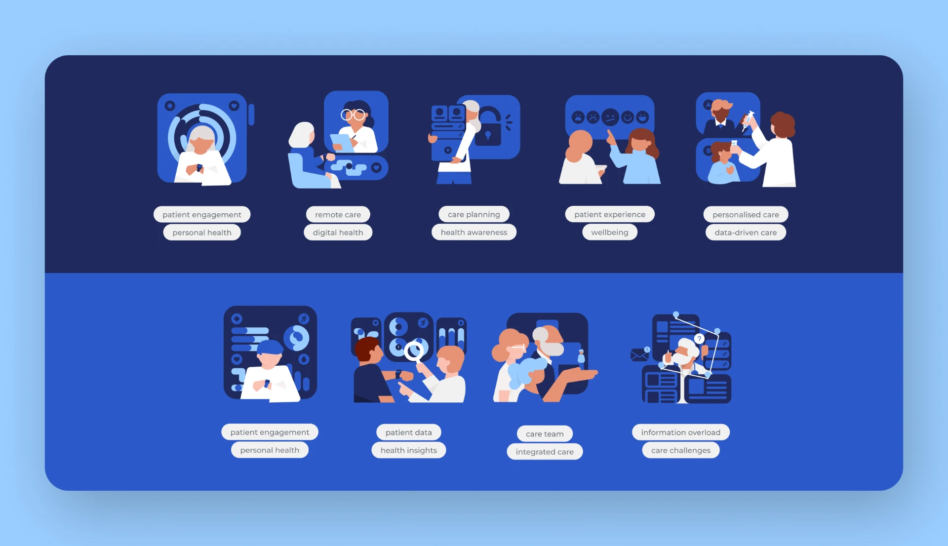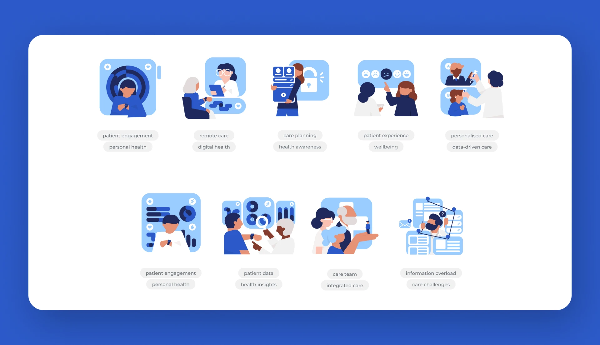 An illustration pack inspired by the patient experience, focusing on how care is lived and felt from prevention through ongoing care and support.